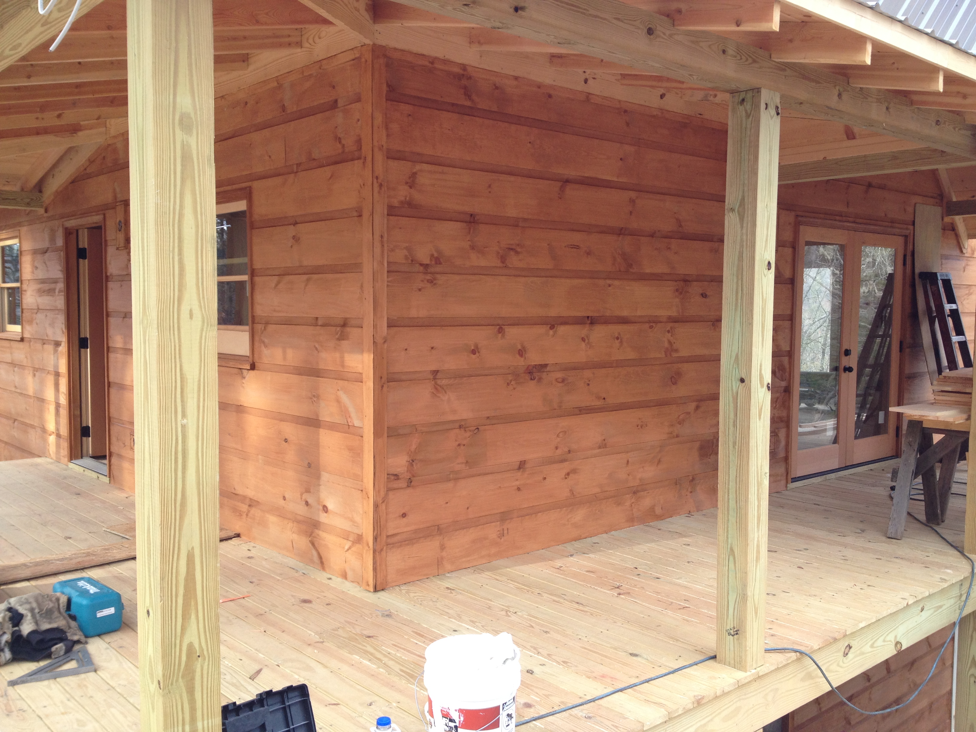 They’ve also been working on the stain on the porch ceiling, which has made that area feel more finished. The color works perfect with the cedar.