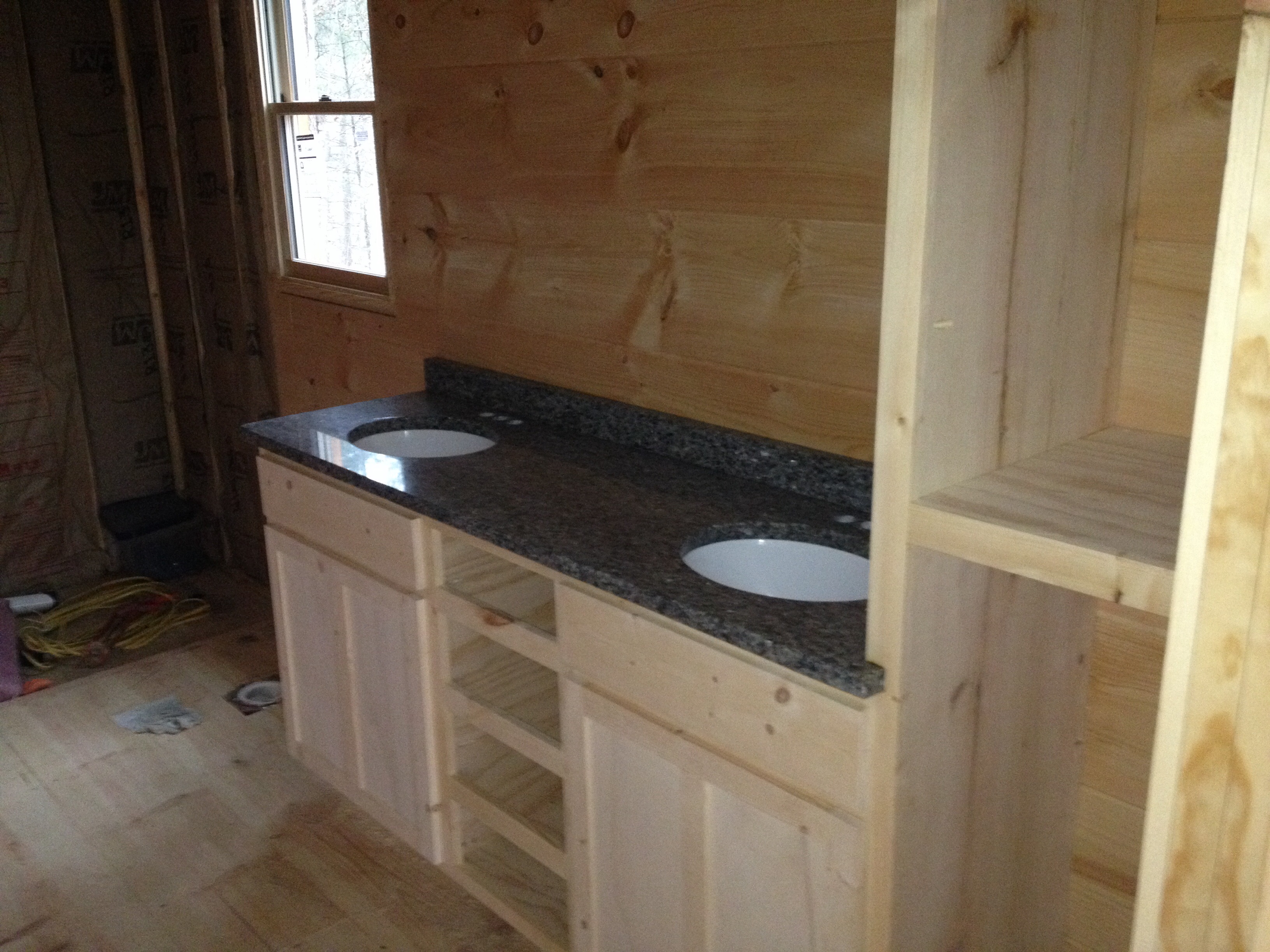 All of the very dark grey granite was installed this week. It turned out pretty dark, but it works ok with the color the cabinets will be and the ceiling color. All of the bathrooms, the kitchen, and the kitchen island have the same granite.