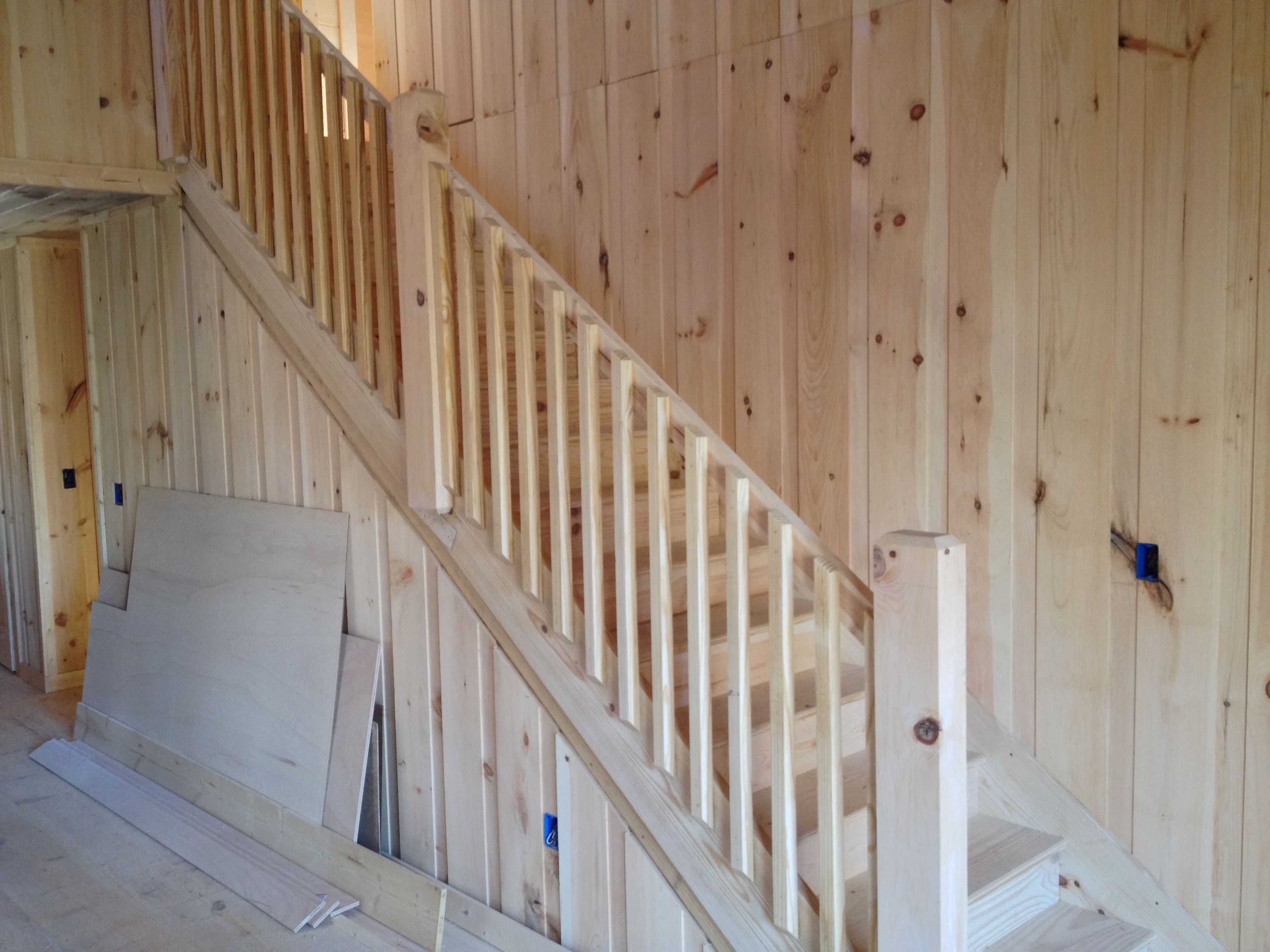 The rough temporary stairs have been replaced with real stairs, and we’ve upgraded the safety of the house with a nice solid railing. This feels like a sign that the house really is approaching completion, as the steps were one of the last truly rough or temporary parts left. (side note: For those of you that have been to the house and seen posts holding up the deck, those were finally replaced as well with some massive supports that are buried about 6′ into the ground. I don’t have a good picture because I was too much of a weather wimp to hike down the hill in the frigid 20 degree weather. Yes, Pittsburgh people, that is 20 above, not 20 below, and it was cold.)