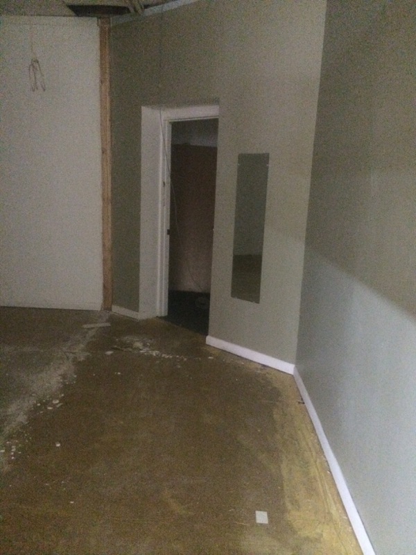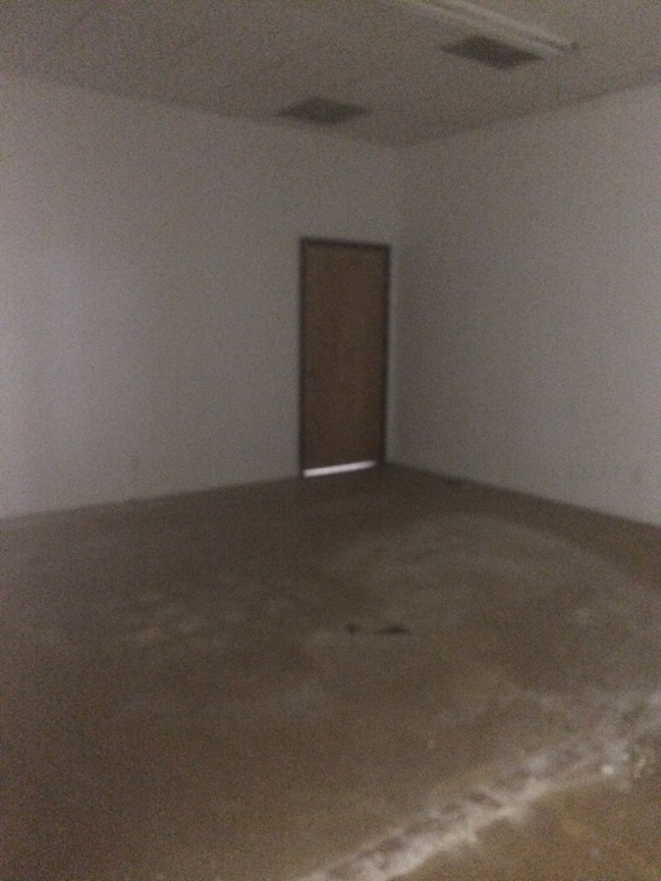 Immediately inside of the backroom is a short section of “hallway” that is 6′ wide before it opens up to the main storage area. This is looking forward into the store. Obviously, those walls will all be solid!