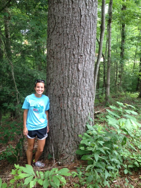 I also stood next to it and is it wider than my arm is long, so we’re thinking it’s about 40″ across. If it were straight, it would be worth some $$, but it’s a scoliosis tree, so it’s a bit wavy. The surprising thing about this tree is that we’ve walked by it about 10 times before and had never noticed it.