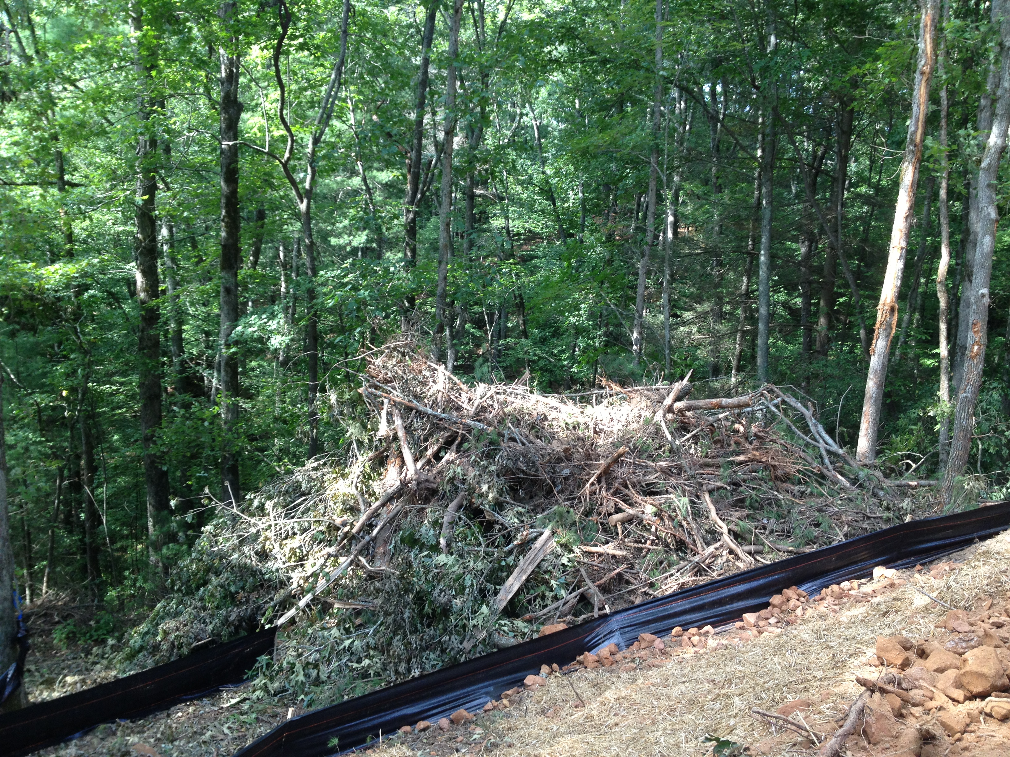 If you’re wondering where all of the trees went, here you go. I know what you’re thinking; “I get a pile that big when I cut my grass every week”. Now take a look at the black silt fence for scale. That’s a giant pile! Once the clearing is done, all of that will be burned on-site. The bigger trees have been removed, although there was only a handful taken out.