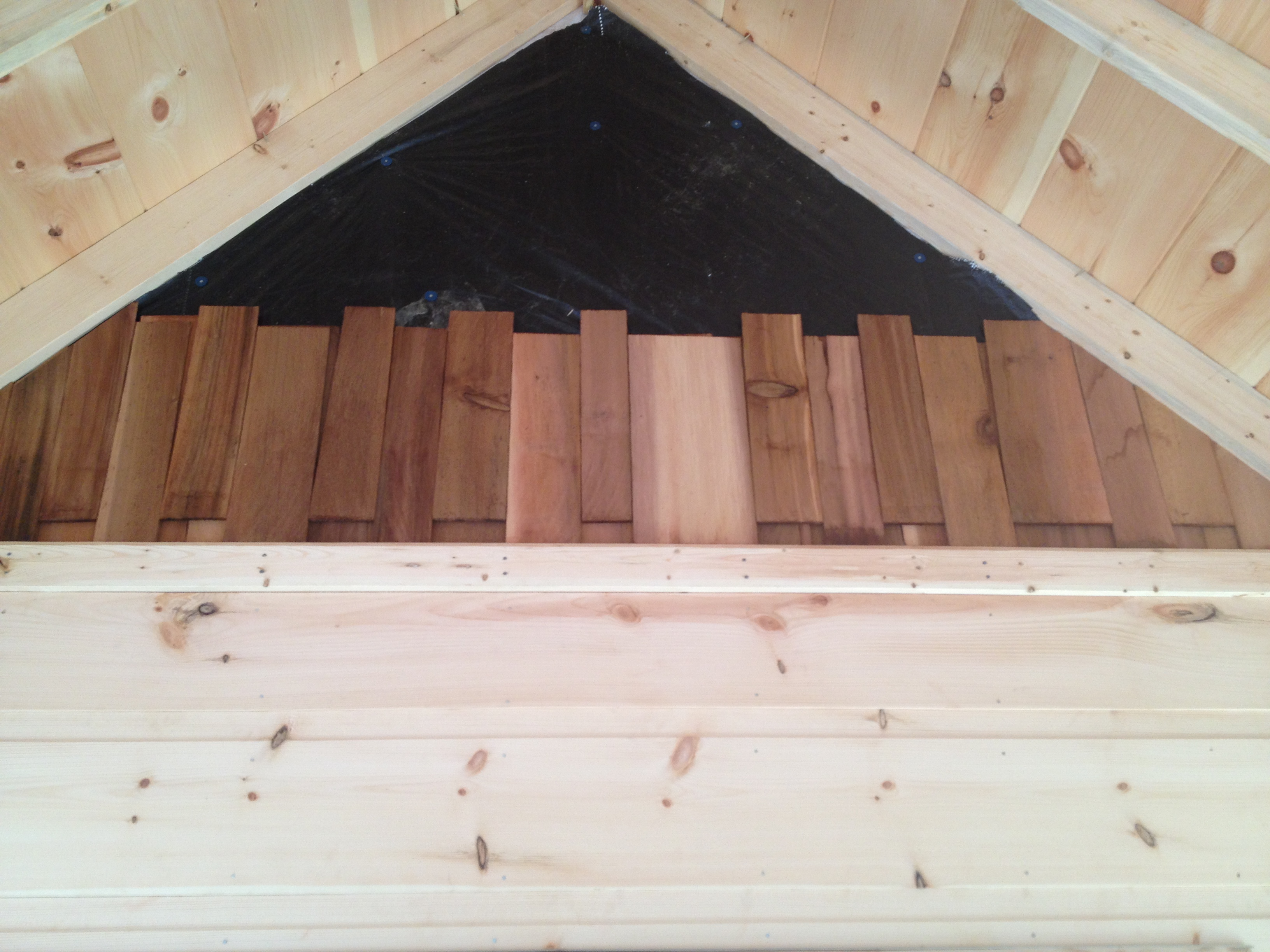 Last, but not least, the house finally has some color! The exterior staining is about 50% complete, and the color turned out perfect. It works great with the cedar shakes and the darker roof. I wasn’t able to get a picture of the whole front because of all of the trucks, but you won’t be disappointed when you check back in a few days for those!